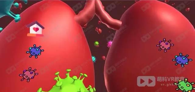 萌科VR新冠病毒防疫教学课件第一部分学习新冠病毒介绍、传播途径、对肺部等器官的危害等,VR虚拟技术使学生们通过沉浸式、交互式学习,到达现实中无法进入的世界,近距离感知新冠病毒。(课件中可点击相应按钮进行知识点学习,同时带有语音介绍)