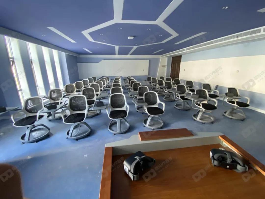 充满设计感和科技感的VR教室,大概可容纳50位同学,同时进行VR授课学习。配置5G专用网络,满足4K高清传输的需求。